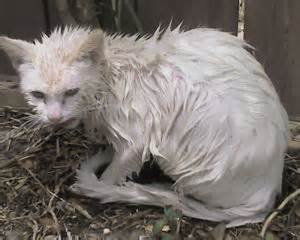 The girl ran into the bathroom and came out holding a wet, white cat. It was covered in grime and looked like an old rag. She said, “He must have gotten stuck in the sewer. I pulled him out of the toilet”. I thought that I would rather stay away from the cat. The girl was happy as this cat had been lost as well.