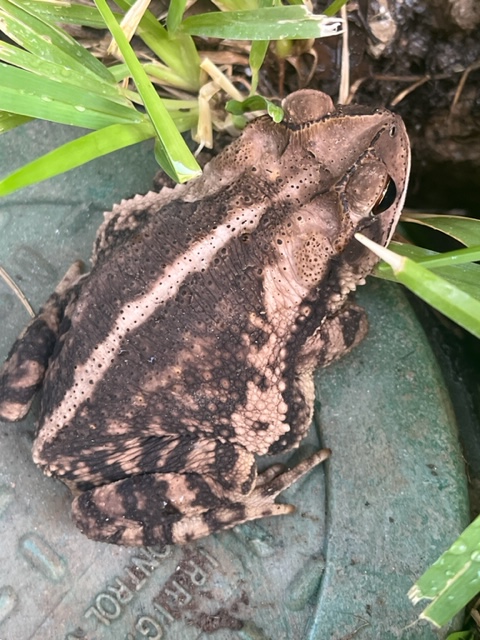 Toads: Found a toad near his burrow while watering the garden. Later, I found a dead toad, entrails all pulled out, on my back porch. When I told my kids, my son said he had played with a toad for a long time that day and had also seen the dead one. We thought the toad from the burrow and the dead one were the same but today (a few days later) I saw the toad by his burrow again.